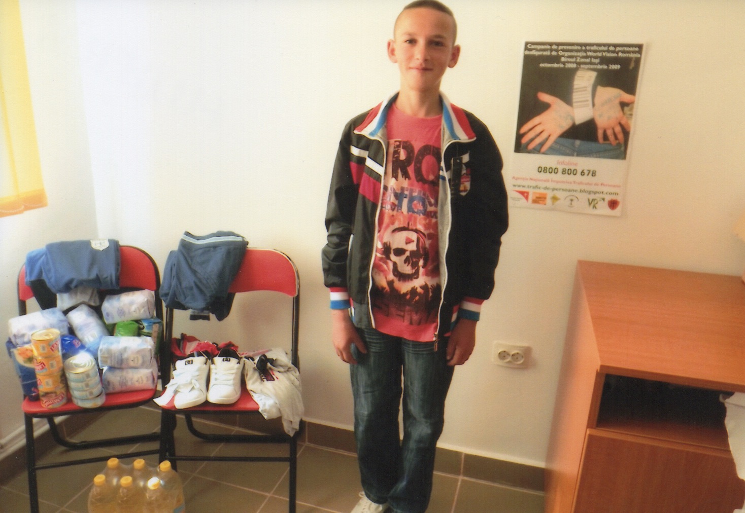 Cristian, 5, is shown at left with his sister and nephew in Romania. His older sister listed the items the family bought with a recent gift: flour, rice, beans, tomato pasta, canned food, honey, peas, potatoes, dairy products, fruits, mushrooms, pasta, halvah, bagels, jacket, blouses, a tracksuit for Cristian and tracksuits for his sisters, washing powder, soap, shampoo and diapers for his sister, toilet paper and many other things.